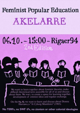 This meeting is the second edition of regular, monthly meetings for Feminist Popular Education, inspired by the concept of the educación popular in Latin America. We want to learn together about feminist theories, make difficult theoretical texts accesible for all of us and discuss about them. We want to create a space for learning together, development of feminist ideas and regular exchange.