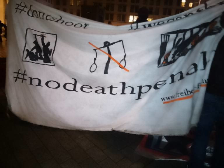 In einem Redebeitrag zur Masseninhaftierung von über 2 Millionen Menschen (siehe PDF) ging es um die Rechtlosigkeit Angeklagter ohne Geld in den USA, die profitorientierte Gefängnisindustrie als aktueller Ausdruck der nie wirklich beendeten Sklaverei dort sowie den organisierten Widerstand zehntausender Gefangener. Danach berichtete jemand über die zahlreichen Hinrichtungen, die seit Trumps Amtsantritt im Januar 2025 in nur wenigen US Bundesstaaten beinahe wöchentlich stattfinden, wo Trumps Unterstützer regieren, allen voran Florida. Es seien seit Januar 2025 bis jetzt mehr Gefangene ermordert worden, als us-weit in den gesamten 10 Jahren zuvor. Dieser Beitrag ist hier als PDF abrufbar.