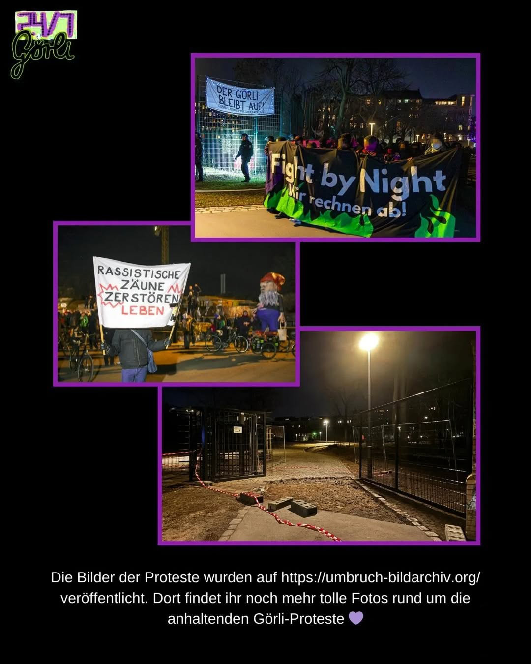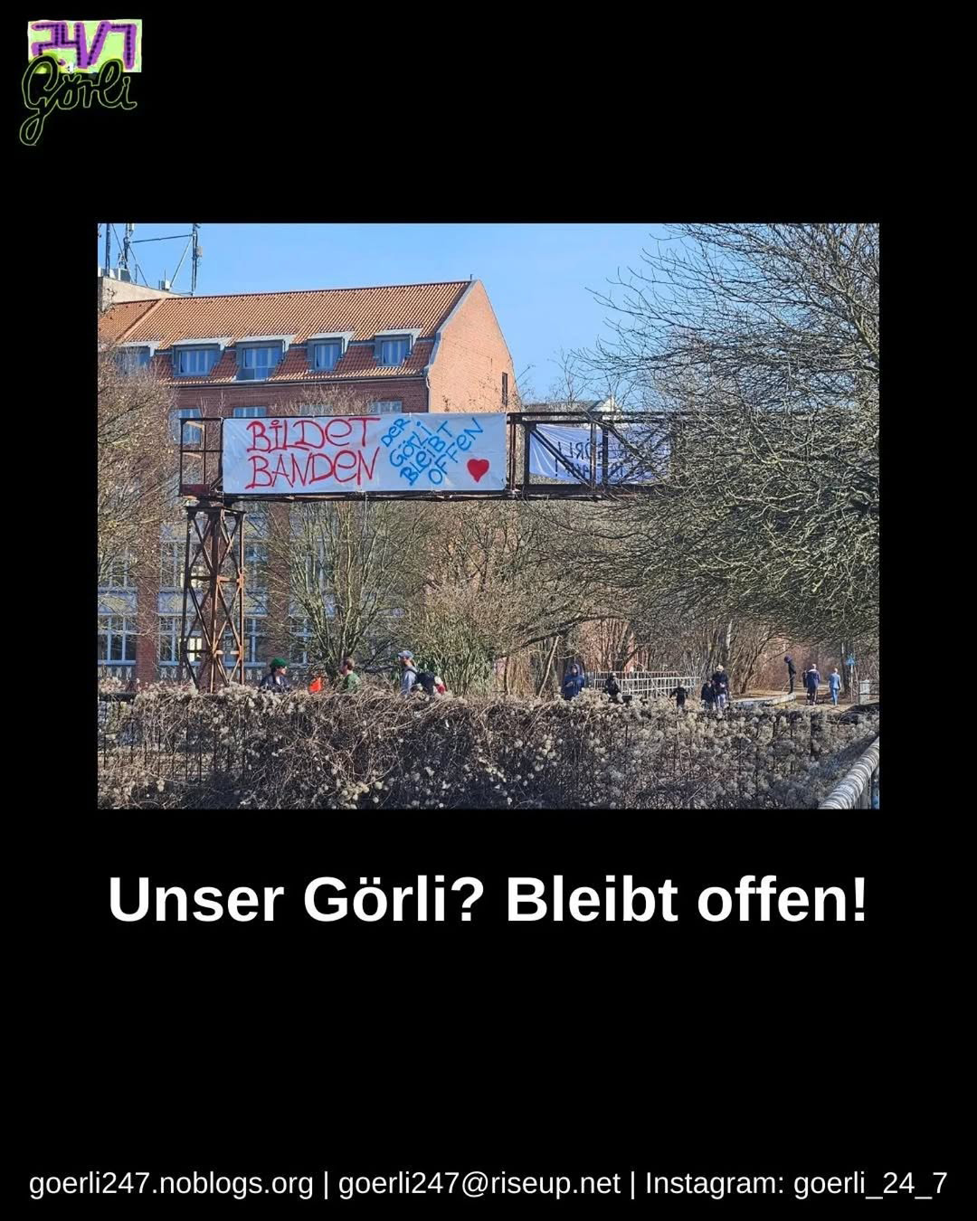Deshalb: Bildet Banden! Mit uns wird der Görli niemals jemals für immer nachts geschlossen bleiben!