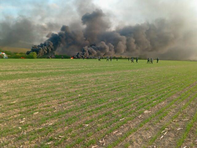 18:30 Uhr: 12 Lastwagen fahren in Richtung Luméville vorbei, begleitet von einem Hubschrauber.