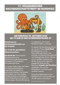 Einladung zum Solidarischen Nachbarschaftstreffen am 28.10.2025 Ab 19.00 Uhr gemütliches Beisammensitzen. Ab 20.00 Uhr Themenabend: Zweckenentfremdung (Ferienwohnung/Büros/dauerhafter Leerstand) und Coral World / Rummelsburger Bucht. Zu unserem Treffen haben sich Gäste vom Zweckentremdungsamt angemeldet. Sie werden uns spannende Einblicke in ihre aktuelle Arbeit geben, von ihren jüngsten Erfolgen berichten und aufzeigen, welche Möglichkeiten wir haben, uns wirksam gegen Zweckentfremdung zu engagieren […]