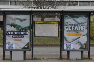 Auf der anarchistischen Buchmesse Berlin vom 7. bis 9. November 2025 zeigen die Aktiven aus der Werkstatt für Antifaschistische Aktionen (w2a) eine Adbusting-Ausstellung. Die Ausstellung zeigt viele Beispiele, wie Aktivistinnen die Werbung von Militär und Polizei mit kleinen Veränderungen bis zur Kenntlichkeit entstellen. Militär-Werbung im öffentlichen Raum wird immer alltäglicher. Der Kampf gegen die millionenschweren Werbebudgets des Militärs scheint aussichtslos. […]