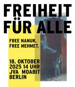 9. Oktober 2025Am 21. Oktober 2024 wurde Nanuk von Zielfahnder des LKAs Sachsen in Berlin festgenommen. Seitdem sitzt er in U-Haft in der JVA Moabit. Nanuk ist beschuldigt Teil des Antifa-Ost-Komplexes zu sein. Im November 2025, nach über einem Jahr U-Haft wird in Dresden der Mammut-Prozess gegen sieben Antifaschist:innen beginnen, unter ihnen auch Nanuk. Im November 2024 wurde in Berlin Mehmet Karaca […]