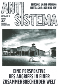 Aus dem Inhalt: – Eine Perspektive des Angriffs in einer zusammenbrechenden Welt – KI und Idiokratie – Die Schönheit der Idee Kontakt: antisistema.noblogs.org anti-sistema ät riseup.net Die Zeitung wird dezentral gedruckt. Deswegen wollen wir dazu ermutigen, diese Seiten selbstständig (nach-)zudrucken und zu verteilen. Englische Ausgabe 5 folgt in Kürze…. Pdf zum drucken: https://de.indymedia.org/sites/default/files/2025/11/%5BDE%5D%20AS5.PRINT_.clean_.pdf Pdf zum lesen: https://de.indymedia.org/sites/default/files/2025/11/%5BDE%5D%20AS5.READ_.clean_.pdf passiert am 10.11.2025
