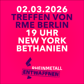 Du hast Lust, dich gemeinsam mit uns gegen Aufrüstung, Wehrpflicht, Krieg und Waffenexporte als Teil eines bundesweiten Bündnisses und einer lokalen politischen Gruppe zu organisieren? Dann komm gern vorbei! Am Montag, den 02. März um 19:00 in Berlin-Kreuzberg. Wir suchen Menschen, die Interesse daran haben, Verantwortung zu teilen und sich längerfristig einzubringen. Uns ist wichtig, gemeinsam Strukturen aufzubauen, voneinander zu […]