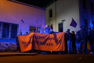 [Übersetzung von https://antifa.st/2024/05/15/not-our-comrades-about-the-german-pro-israel-anti-fascists/] Seit langem verfolgen wir mit Abscheu den pro-israelischen deutschen Antifaschismus oder die antideutsche Bewegung, wie sie in Deutschland genannt wird, und wir haben uns nie mit den Gruppen, die diese obskure Strömung vertreten, gemein gemacht. Angesichts des andauernden israelischen Völkermordes an den Palästinensern ist es für uns jedoch längst an der Zeit, uns offiziell von allen linken […]
