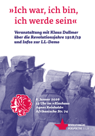 Klaus Dallmer hat das Buch »Die Meuterei auf der ›Deutschland‹ 1918/19 – Anpassung, Aufbäumen und Untergang der ersten deutschen Arbeiterbewegung« geschrieben. Er wird uns einen Überblick geben über die historische Entwicklung der Arbeiter*innenbewegung in der Zeit des Ersten Weltkriegs bis zur Novemberrevolution, der Gründung der KPD und des Januaraufstandes 1919. Anschließend wollen wir gemeinsam diskutieren, was wir aus der Geschichte […]