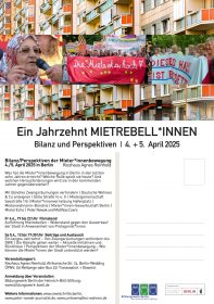 Einladung zum Solidarischen Nachbarschaftstreffen am 28.10.2025 Ab 19.00 Uhr gemütliches Beisammensitzen. Ab 20.00 Uhr Themenabend: Zweckenentfremdung (Ferienwohnung/Büros/dauerhafter Leerstand) und Coral World / Rummelsburger Bucht. Zu unserem Treffen haben sich Gäste vom Zweckentremdungsamt angemeldet. Sie werden uns spannende Einblicke in ihre aktuelle Arbeit geben, von ihren jüngsten Erfolgen berichten und aufzeigen, welche Möglichkeiten wir haben, uns wirksam gegen Zweckentfremdung zu engagieren […]